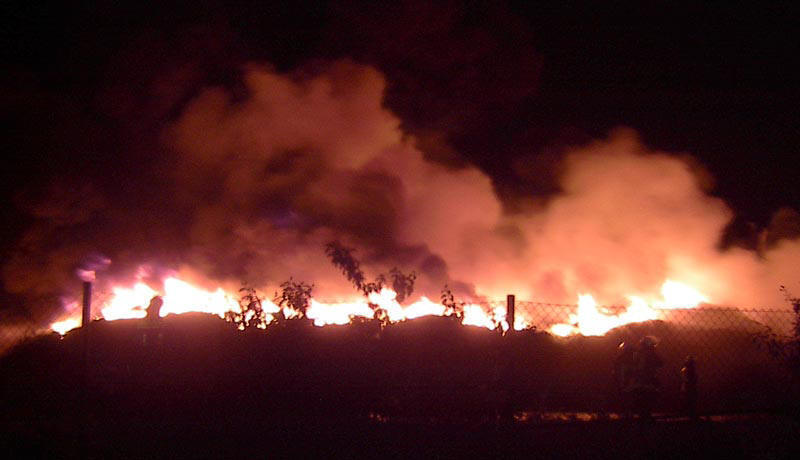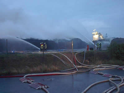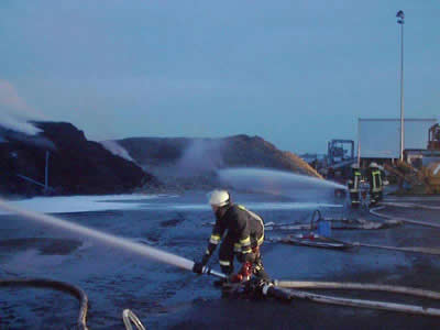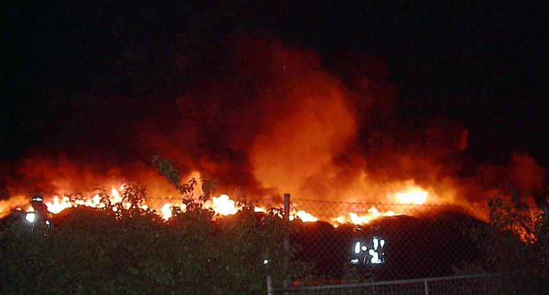 Kurz vor Mitternacht des 6.7.2005 wird der Löschzug Uerdingen alarmiert - auf dem Gelände einer Recycling-Firma im Krefelder Hafen brennt zum wiederholten Mal eine Halde geschredderter Altreifen.